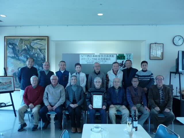 新年、早々に計画しました、よもぎの会における三田洞清掃とNTT西日本岐阜支店長表彰の記念昼食会、残念ながら前日に雪が降り、清掃活動は中止とし、記念昼食会のみ実施しました。昨年11月11日にNTT退職者交流会において、2024年度社会貢献活動として、NTT西日本岐阜支店長様から表彰して頂き、記念としての昼食会、インフルエンザでの欠席もありましたが15名の参加となりました。前代表の古川さんから、よもぎの会は1980年からの取り組みで一時期、少なくなりましたが皆さんの協力により継続でき、今年4月で45周年となるより一層、健康に留意し活動していきましょうと乾杯しました。