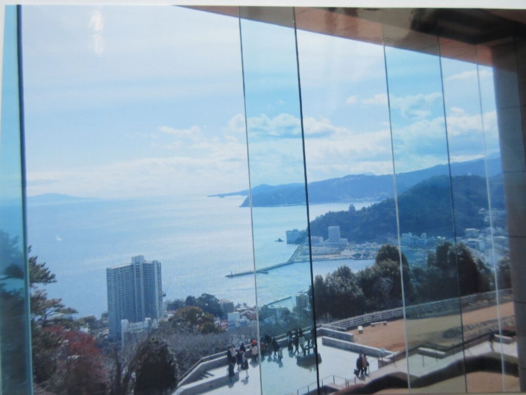 春の茶会が開催され和服姿の方々も多く、食事会場の利用が出来なかったが、相模湾の輝く景色を堪能した。