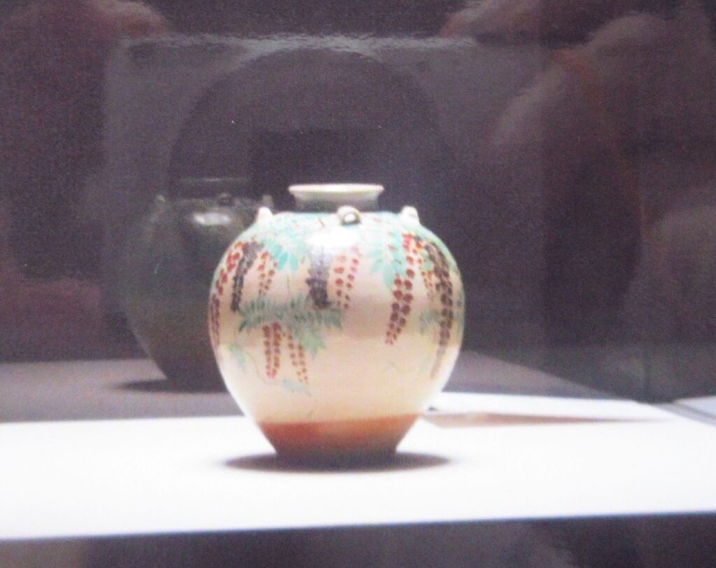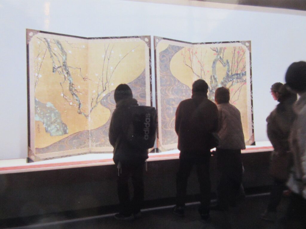 会場は収蔵品3000点、その中には 国宝「紅白梅屏風」尾形光琳作・「色絵藤花文茶釜」野々村仁清作・手鑑「輪墨城」が展示され、国宝3点を同時に鑑賞する事ができた。