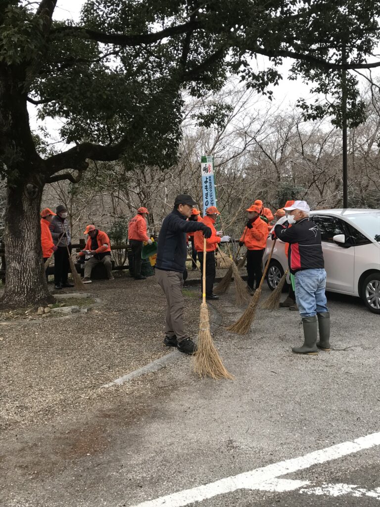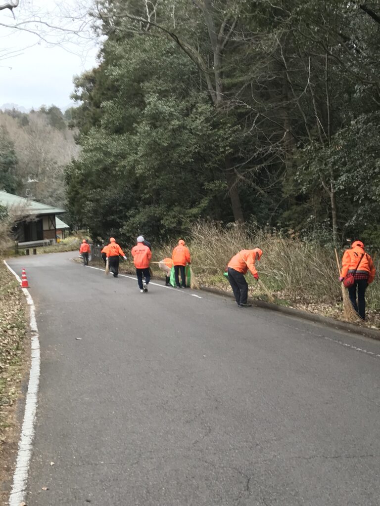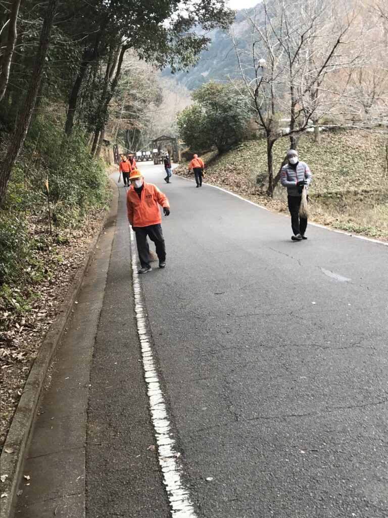 もうすぐ春なのに、風もないのに、非常に肌寒い朝、昨年の11月以来、4か月ぶりの清掃活動に頑張りました。参加予定者が集るのを待ちながら近況報告会後、竹箒、ゴミ取り、1台の電動ブロアーを手にいつも駐車場に繋がる車道の清掃作業に取り組みました。寒さを吹っ飛ばそうと暖かそうなオレンジ色のジャンパーを着用しての作業、車道脇は秋から積もった落葉が堆肥のように固まっており、作業はやりがいがありました。1時間弱の作業で、車道は写真のように綺麗になりました。また、終了後、会長からワンコインの駄賃をもらい、メンバー有志が、近くの喫茶店で近況報告会を深めました。(和田 克彦 記)