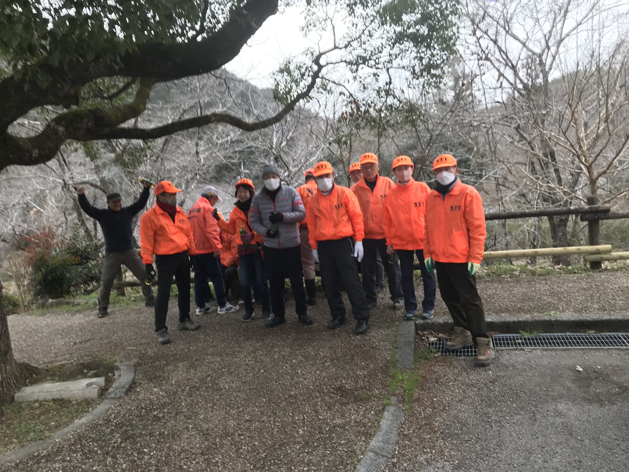 もうすぐ春なのに、風もないのに、非常に肌寒い朝、昨年の11月以来、4か月ぶりの清掃活動に頑張りました。参加予定者が集るのを待ちながら近況報告会後、竹箒、ゴミ取り、1台の電動ブロアーを手にいつも駐車場に繋がる車道の清掃作業に取り組みました。寒さを吹っ飛ばそうと暖かそうなオレンジ色のジャンパーを着用しての作業、車道脇は秋から積もった落葉が堆肥のように固まっており、作業はやりがいがありました。1時間弱の作業で、車道は写真のように綺麗になりました。また、終了後、会長からワンコインの駄賃をもらい、メンバー有志が、近くの喫茶店で近況報告会を深めました。(和田 克彦 記)