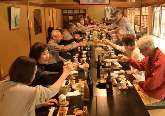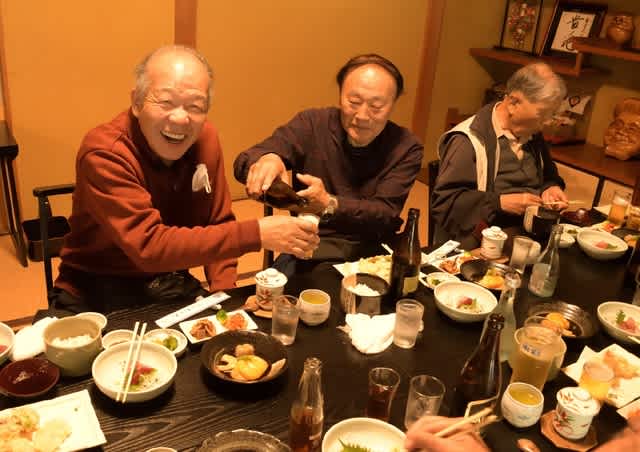 「おせん」は、芸能人も多数訪れる老舗料亭で、庭園を眺めながら美味しい料理とお酒を楽しみました。