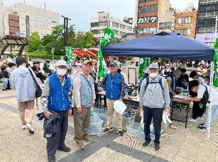 大垣市中心部で10日、11日と開催された大垣まつりは、6年振りに13両の軕が勢ぞろいし、新型コロナの影響で見送られてきた、大垣まつり行列も暫くぶりに実施しされたことから18万人の人が来場しました。すいと会は大垣まつりクリーン作戦実行委員会よりボランティア参加者の受付を依頼され、指定された時間内で、受付簿の管理やボランティア証明者の発行、ゴミ袋やゴミハサミ等の貸出、手空き時間にて駅周辺のゴミ拾いを実施しました。市内の小中学校では、ボランティア活動に力を入れており、学校に渡す証明書の取得を求めて多くの子供たちが受付に列を作りました。受付をした会員は大忙しでしたが、交代しながら役割分担を決めて手際よく対応をしていました。(渡邉 昌司 記)