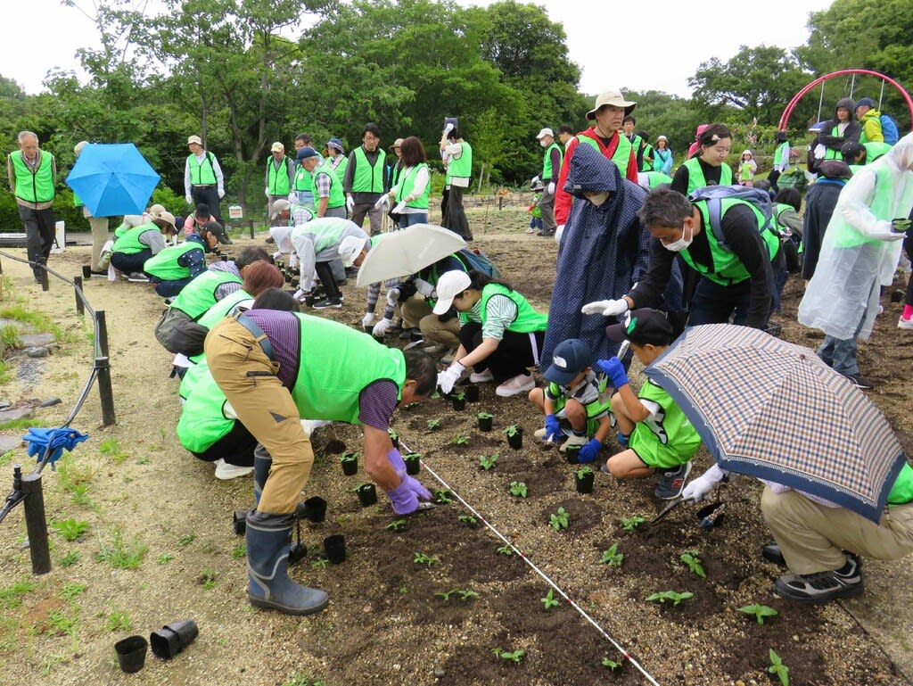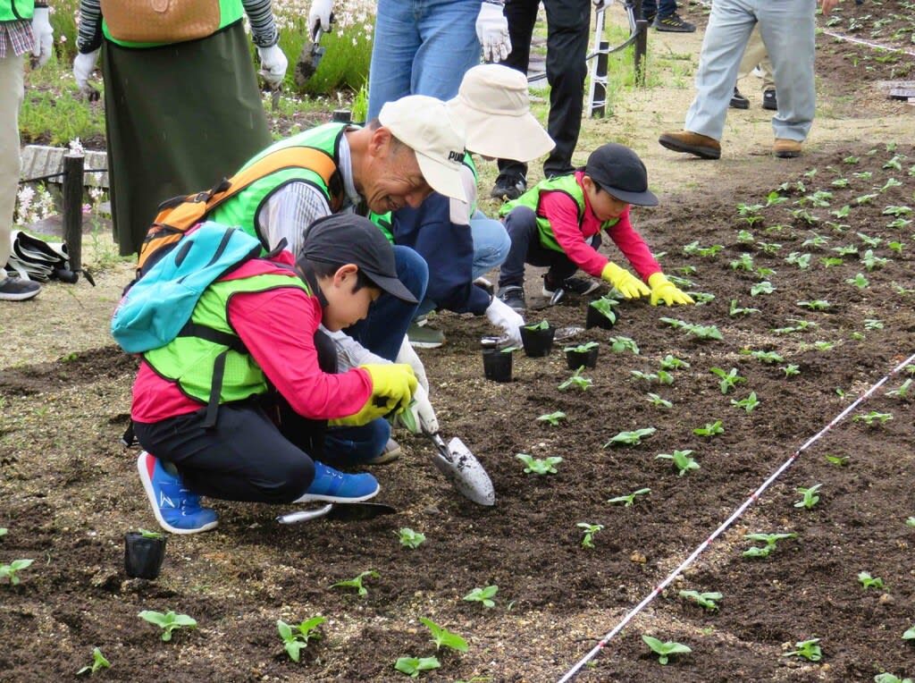 (ひまわり)の花植え作業に、旧友会名古屋支部からは