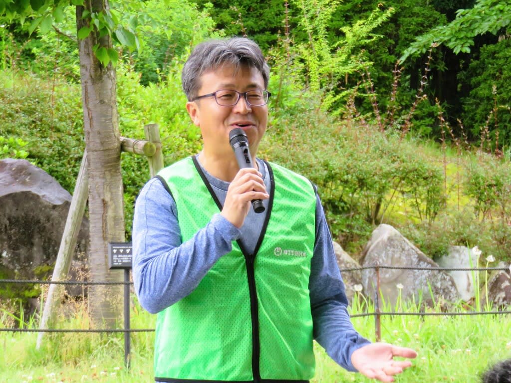 小雨の中、展望休憩所で挨拶されるNTT西日本グループ