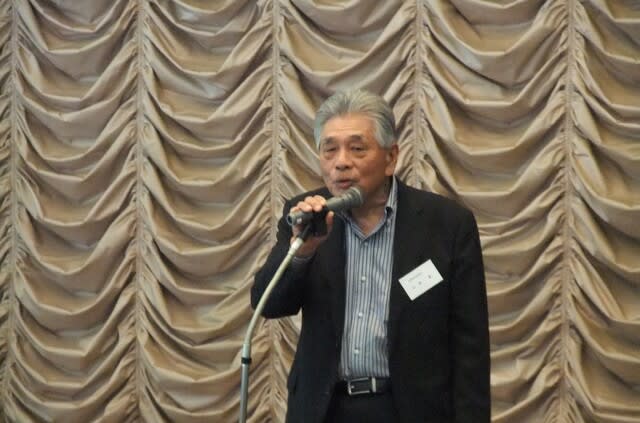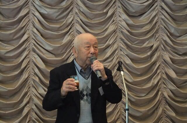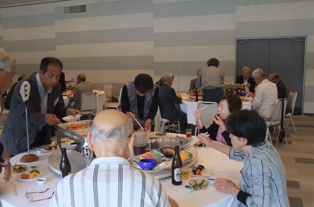 続いて、森川賢治さんの乾杯で懇親会に移りました。この席で佐藤支部長よりユーモアのある楽しい話で挨拶を頂き、会場を大変盛り上げていただきました。1年ぶりの再会に健康を確かめ合ったり、昔話に花を咲かせたり、時間のたつのも忘れて楽しい時間を過ごしました。名残がつかないうちにお開きの時間となり、山田等さんの締めの言葉で終了しました。(續木 保征 記)