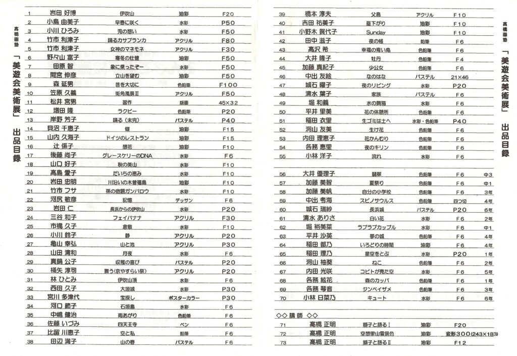 瑞穂市、岐阜市など5市町での絵画教室を主宰し活躍している『高橋塾 美遊会』は、今年も各教室合同で「みんなで選ぶ絵画賞展」を開催しました。市内外の教室に通う小学1年生から80代までの69人が73点を出展。画材も油彩、アクリル、水彩、色鉛筆、パステル、鉛筆、ペン、ポターカラー 等で、各教室にて自由に楽しく創作された作品が並びました。出展者や来場された方が、気に入った絵(優秀と思われる作品)を投票し、その投票数で各賞を決めることとしています。 (田原 智 記)