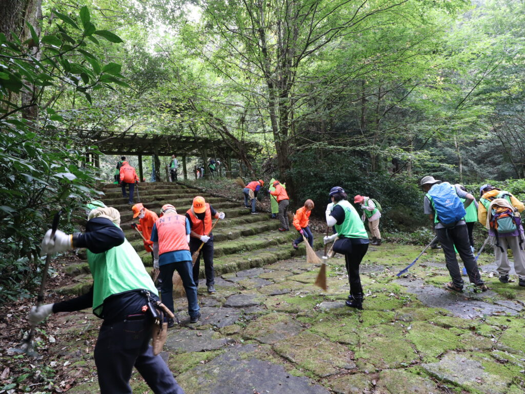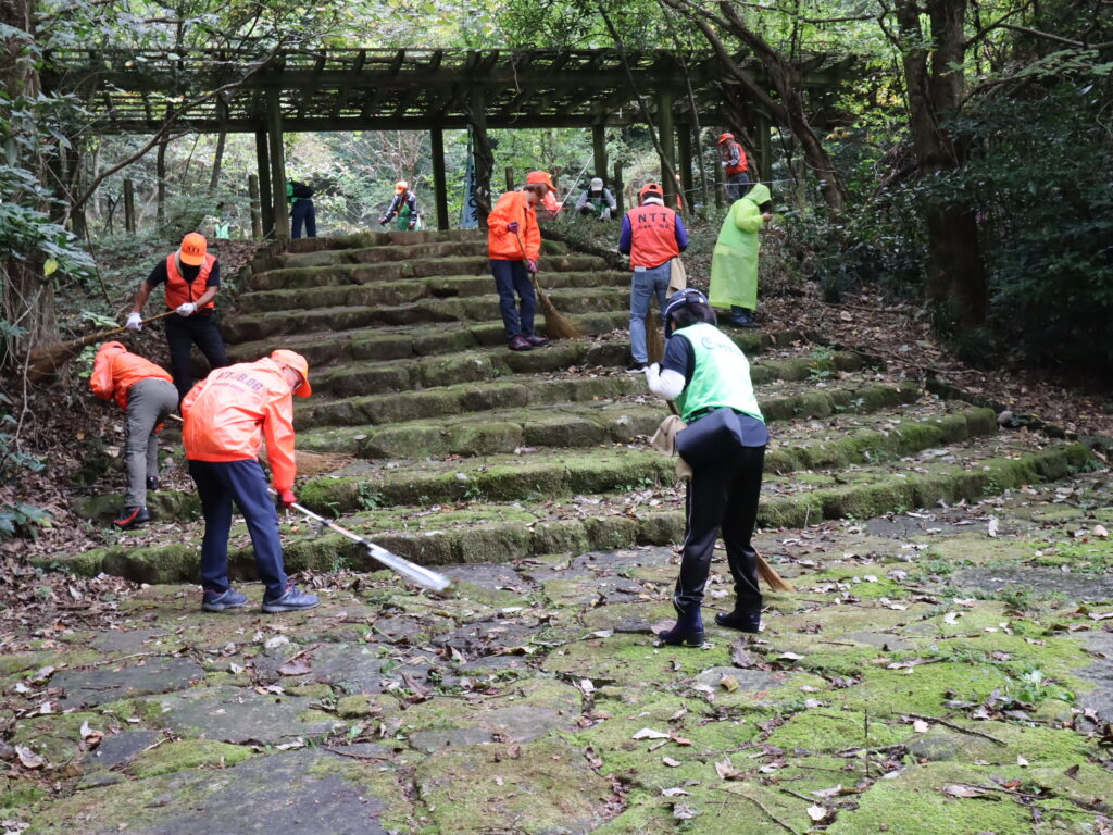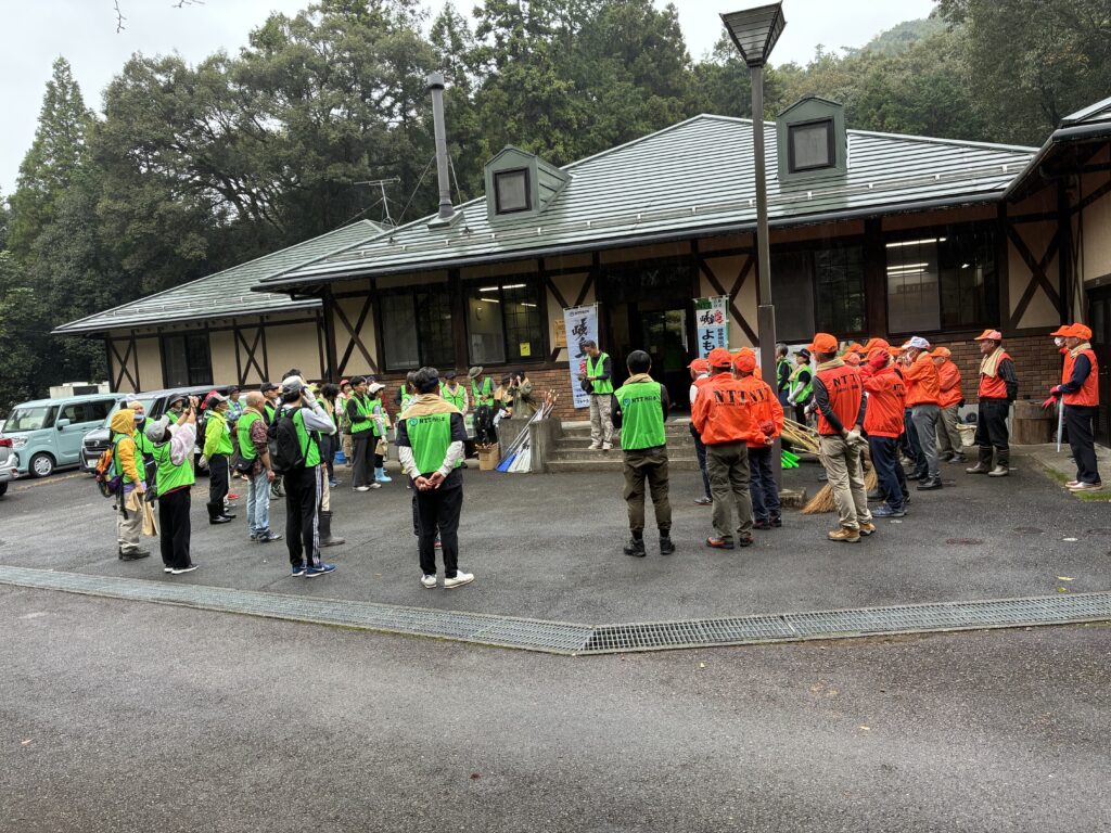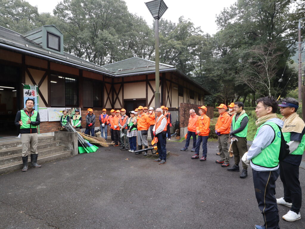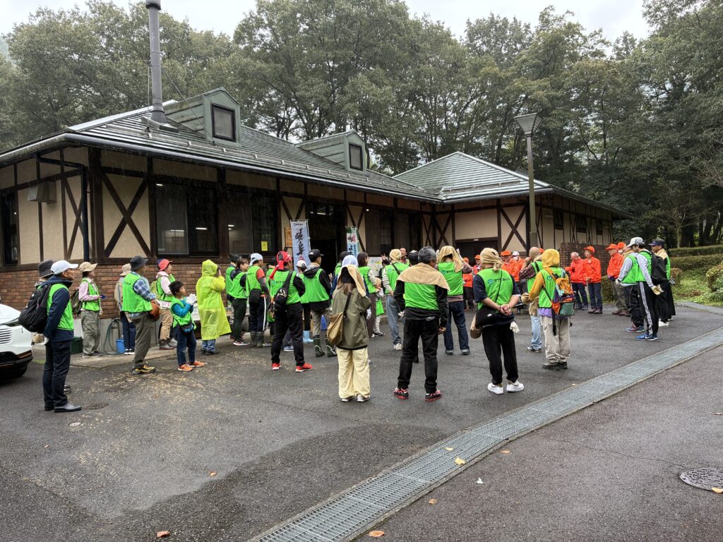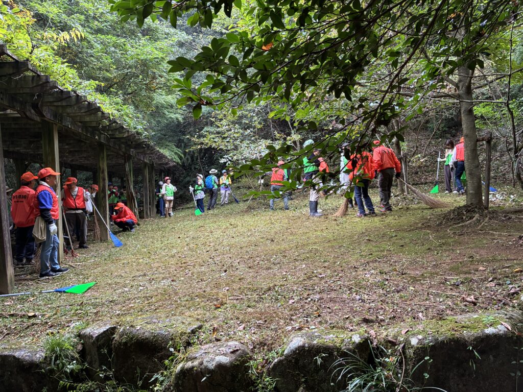 NTTグループ共通の社会貢献活動である「Green With Team NTT」の参加型の環境ボランティア活動として、ながら川ふれあいの森において、下草刈りによる里山の保全活動が実施され、NTT-OB・OGよもぎの会のメンバーも参加、一緒に汗を流しました。集合場所の駐車場へ行くと金木犀の甘い香りが迎えてくれました。雲息が怪しい中、四季の森センター前でのオリエンテーションで、立木岐阜支店長からの激励の挨拶と隊長からの作業手順などの説明を受け作業に取り掛かりました。草刈機4台と竹箒・熊手・高足鋏などを活用して、植樹した苗木周辺や遊歩道等の下草刈り、落葉・枯れ枝の除去などに取り組みました。NTT社員の皆さんの若草色のビブスとNTT-OB・OGよもぎの会のオレンジ色のビブスが入り混じっての作業、現役の社員の皆様との交流、約1時間の作業後、東屋で秋の草花を使った寄せ植え鉢を作り、駄賃の弁当とともにいただき帰りました。(和田 克彦 記)