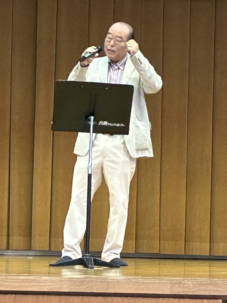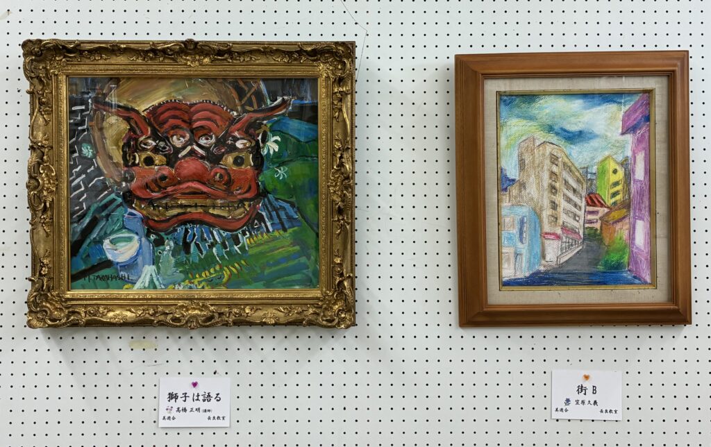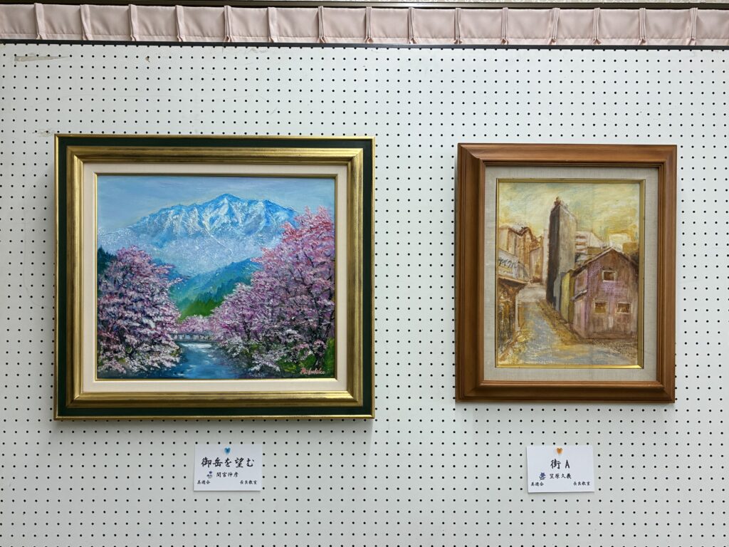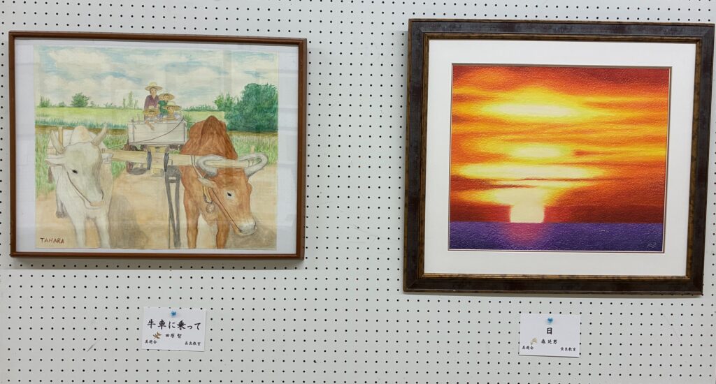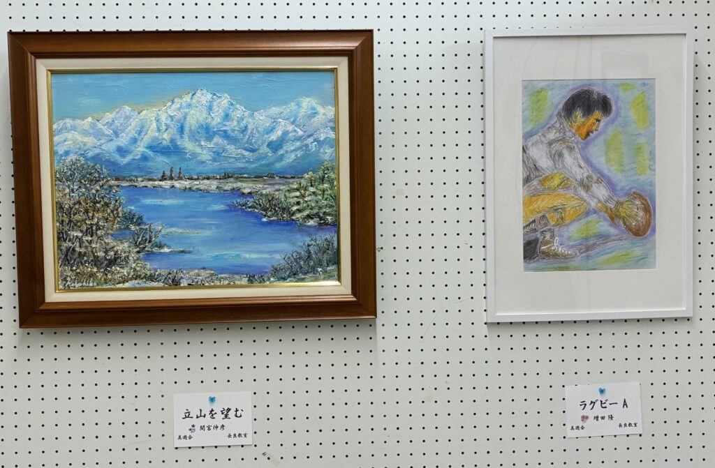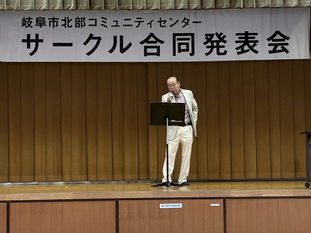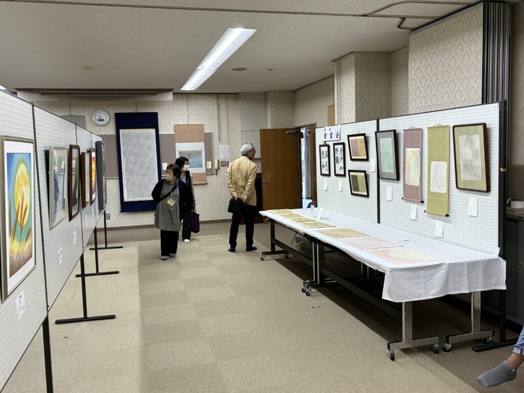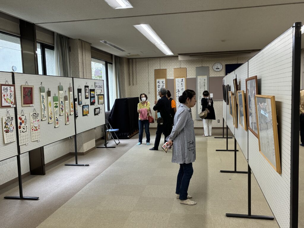 高橋塾 美遊会岐北教室は、10月19日、岐阜市北部コミュニティセンターで開催されたサークル合同発表会に、会員7名がそれぞれの想いの作品を出展しました。発表会は、ピアノ、フラダンス、三味線、カラオケ、舞踊、大正琴、詩吟、合唱、太極拳など、13のサークルの演技発表と俳句、短歌、生け花、書道、絵画の作品展示が行われ、美遊会は地元イベントの盛り上げに協力、まさに合同発表会に花(華)を添えました。なお、カラオケ発表会(歌合戦)には、NTT退職者岐阜カラオケ同好会のメンバー2名(向井繁之さん、和田克彦さん)が参戦し、自慢の歌声を披露されました。 (田原 智 記)