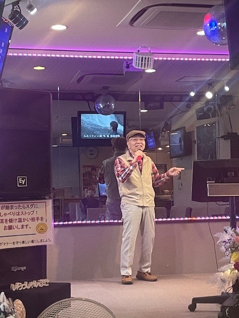 今回、検査入院等のメンバーがあり、参加者は8名と少なくなりました。当日は曇りで急に寒くなりましたが、1人4曲を熱唱、会場はいつの間にか暖かく(熱く)なりました。