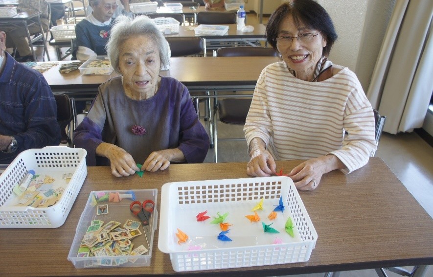 「NTT退職者西濃地区むすびの会」使用済み切手整理作業と千羽鶴折り紙作りに協力・悪戦苦闘