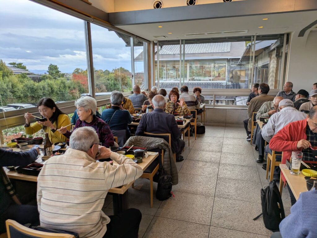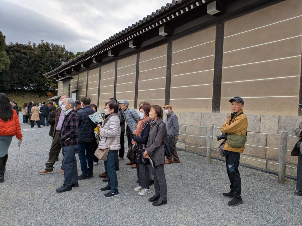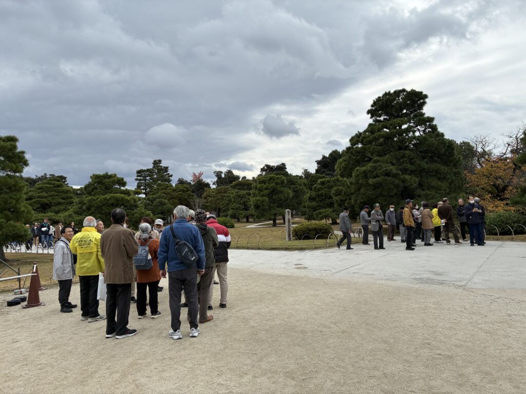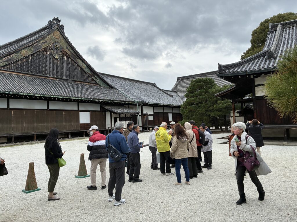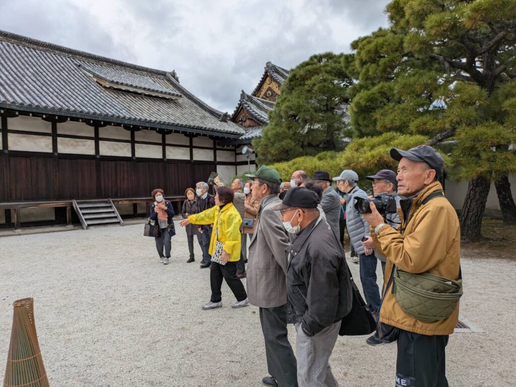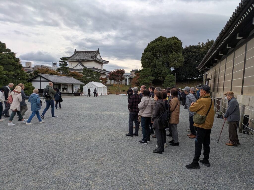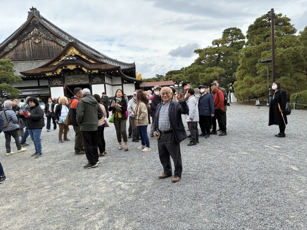 昨年5年ぶりに実施したのに引き続き、京都元離宮二条城と嵐山を訪ねる日帰りバス旅行を実施しました。午前8時JR岐阜駅前集合、出発の案内でしたが、一人の遅刻、欠席もなく、定刻に出発できました。地元名鉄観光バスの声の若いガイドさんの優しく丁寧な案内を聞きながらも、同席した仲間との近況や昔話に華を咲かせました。古都京都元離宮二条城に到着、ここでもまた、ガイドさんに徳川家の栄枯盛衰と日本の歴史の移り変わりについて、細かく丁寧に説明していただき、感嘆のため息、今更ながら勉強させてもらいました。その後、嵐山で綺麗な盛りつけの京料理を堪能しました。びっくりしました。どこへ行っても周りは半分以上が外国人、渡月橋、竹林の散策は取りやめ、少し小さくなりながらお土産店を探索しました。帰りのバス内では、高齢(恒例)のビンゴゲームに歓声を挙げながら、全員、元気で安全にJR岐阜駅前へ帰還しました。また、幹事から来年は「大河ドラマ 豊臣兄弟」を訪ねるとの案内もあり、期待を胸にそれぞれ帰路につきました。 (渡邉 智弘 記)