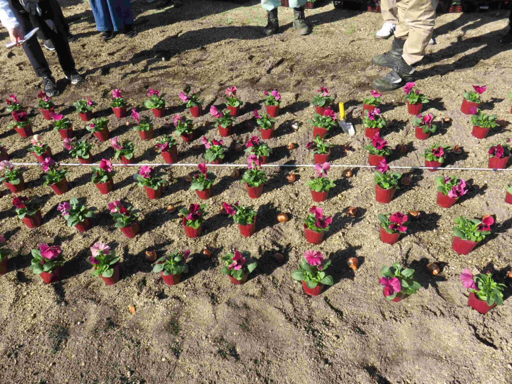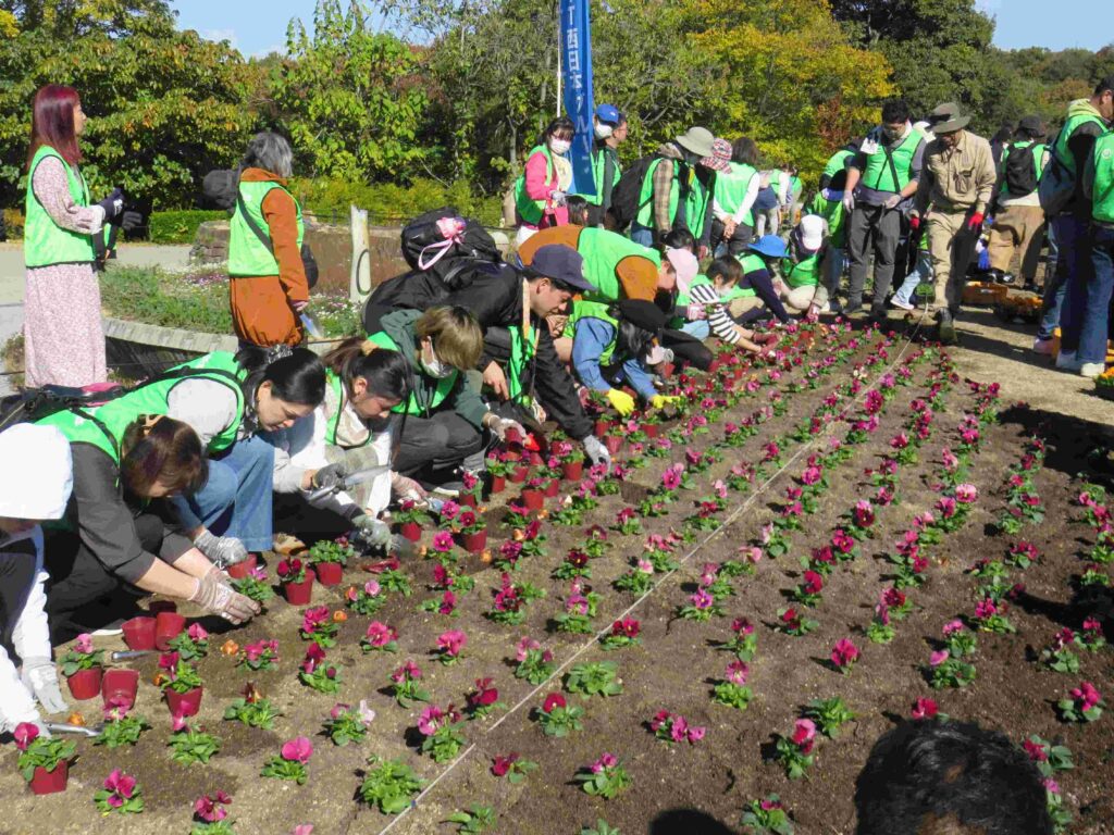 令和7年11月15日(土)、NTT西日本グループ約220名で行われた春花壇(チューリップとパンジー)の花植え作業に、東海電々旧友会名古屋支部からも10名が参加しました。
