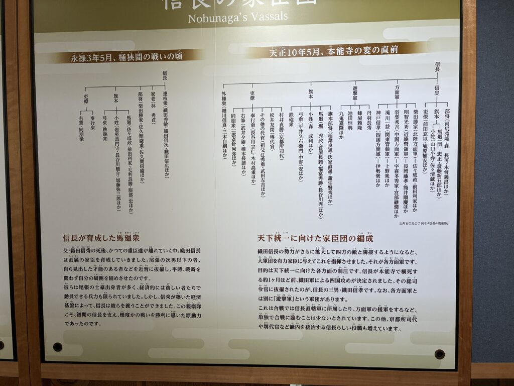 その後、持参のおむすびを頬張りながら、軍議。足元が悪いことから、少し自信のある兵士(7人)だけで標高89.5mの山頂の天守「小牧山歴史館」を目指すこととしました。途中、「近世城郭のルーツ」とされている信長が築いた石垣を観ながら歴史館へ。館内には織田信長や徳川家康などの戦国武将たちの戦略の謎など《岐阜市茜部在住の堀弘会員の先祖で、信長に仕え大活躍されたとされる兵士〈馬廻 堀秀政 ※〉の記述もあり》が紹介されており、ここでも少し当時に思いを馳せました。天守からは四方遮るものがなく一望でき、感激。信長は美濃の斎藤氏を攻めるために美濃方面を一望できるここに城を築いたとされ、北西方向を見わたすも曇り空で稲葉山は確認できず、残念。 下山後は、名鉄電車で岐阜駅へ帰り、有志が街角の茶店で少しアルコールを入れて休憩して帰宅しました。なお、兵士全員による戦果の写真報告は、機を逸しました。 (田原 智 記) ※(齋藤道三の家臣である堀秀重の長男として美濃国厚見郡茜部で生れ、13歳の若さで織田信長の小姓・側近に取り立てられ、次第に奉行職だけでなく戦場でも活躍するようになった。小さい頃から頭も顔も良く秀吉に信頼され、戦いが上手、外交もこなせ人望も厚かったとされ、数々の合戦で活躍、味方の不利な状況では機転を効かせた行動により味方を勝利させたとされる。)