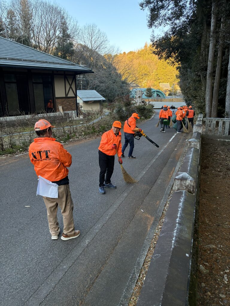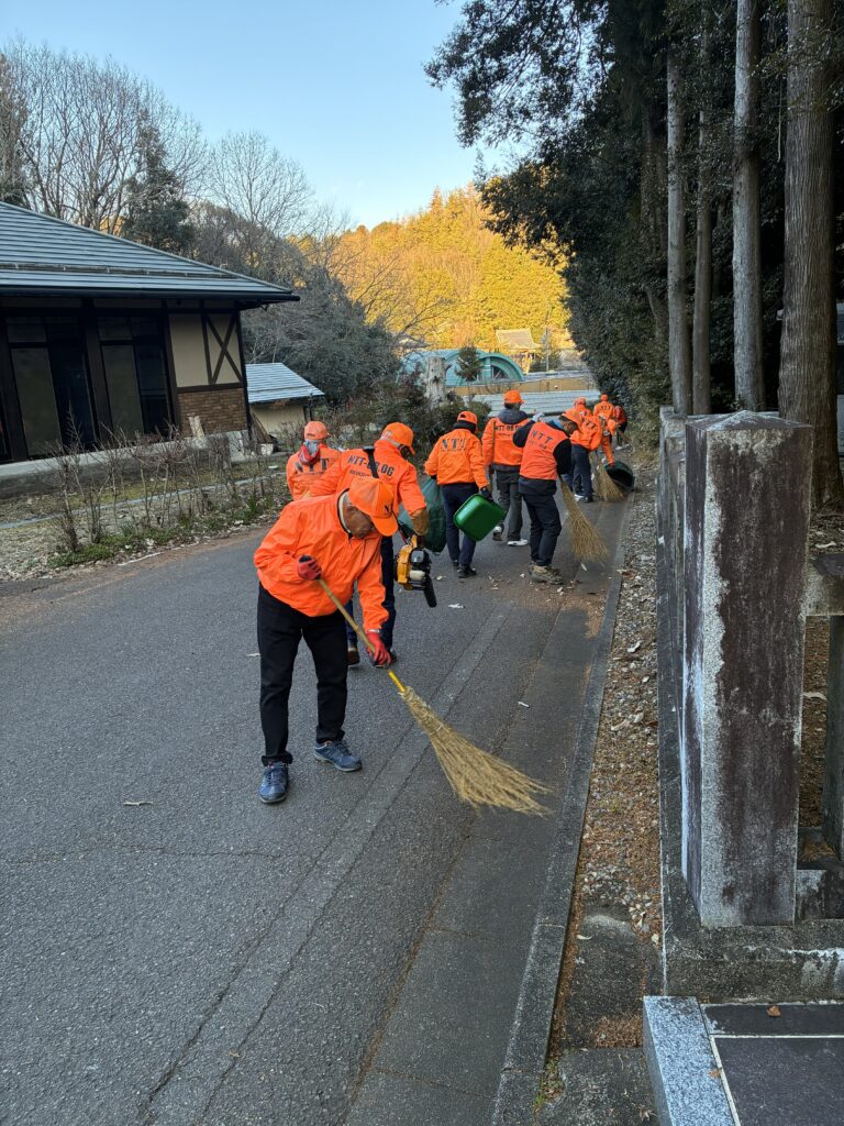 令和8年初めての3連休は雪の予想、初日の今日は今年一番の寒さか、リーダーからホットカイロをもらったが、手袋をしても手が非常に冷たい朝、いつもの駐車場へ繫がる坂道の清掃作業に取り掛かりました。連休初日ということもあり、百々が峰を目指して駐車場を出入りする車両は非常に多く、運転の邪魔をしないよう、また、曳かれないよう、安全に留意しての作業でした。正月の風が清掃してくれたのか思っていたより落葉は少なく、30分ぐらいで予定の作業を終了しました。その後、有志8名が近くの茶店で反省会、メイメイの近況や今年の大河ドラマ「豊臣兄弟」の話題に🌸を咲かせました。メンバーから、「私の家系は織田信長に反旗をひるがえした明智光秀の系統」との告白もあり、話は更に盛り上がりました。 (和田 克彦 記)