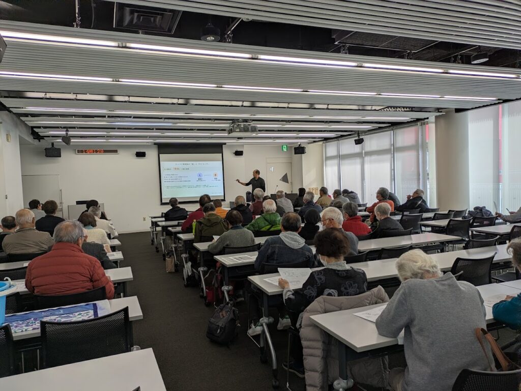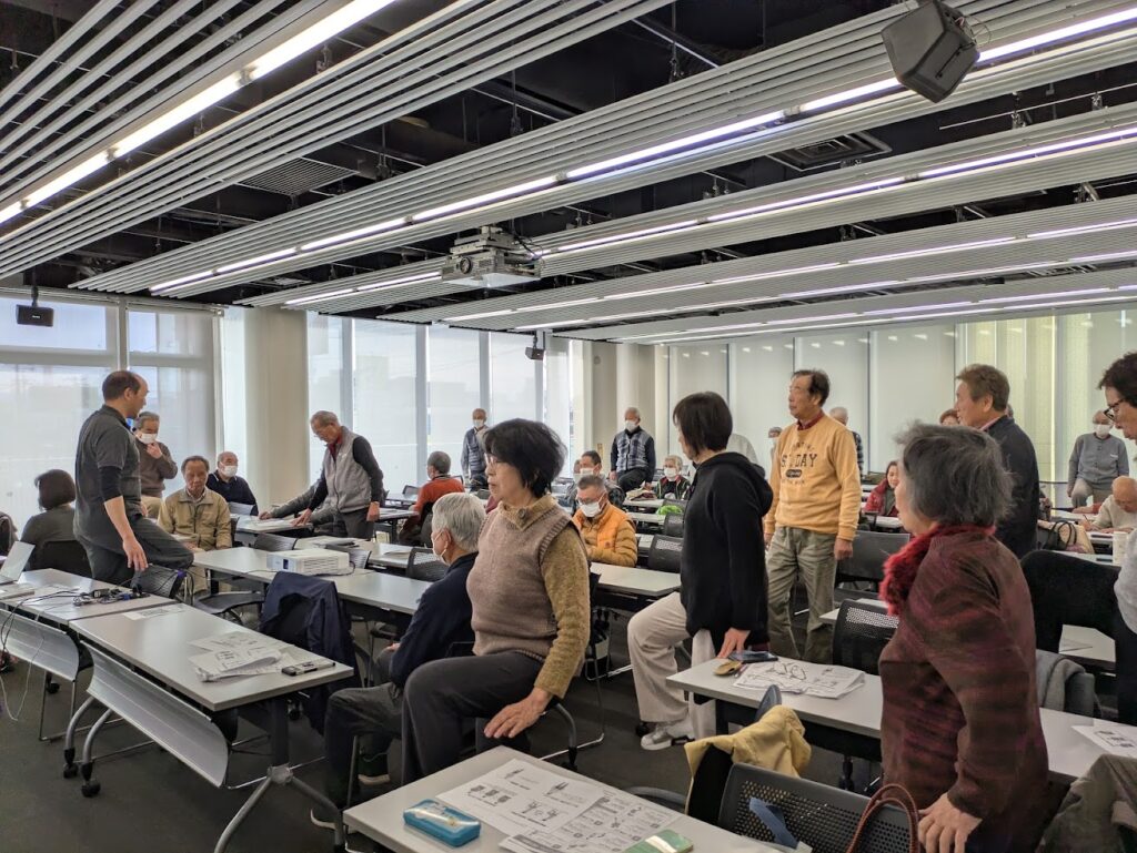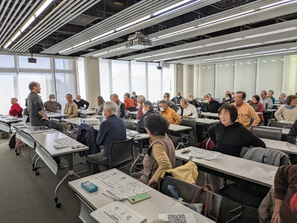 今回、参加者の半数近く(21名)の方が80歳以上と元気な皆さんが参加していただきました。講義では「80代の体は70代が作る。今が人生で一番若い」10年後の土台を作るためには今日から始める、そのためにはどのようなことが必要なのか。講師の講義内容に皆さん頷きながら耳を傾け、また実技では固くなった体を少しでも柔らかく動くようにと、一生懸命に講師の指導に体を動かしていました。皆さん10年後も今のように元気に過ごしたいですね‼